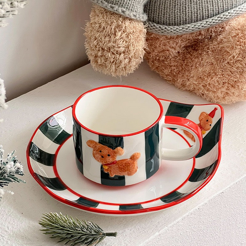A cheerful companion for your morning toast or afternoon tea — this ceramic mug and matching plate set features a hand-painted birthday puppy with a tiny party hat and bell.